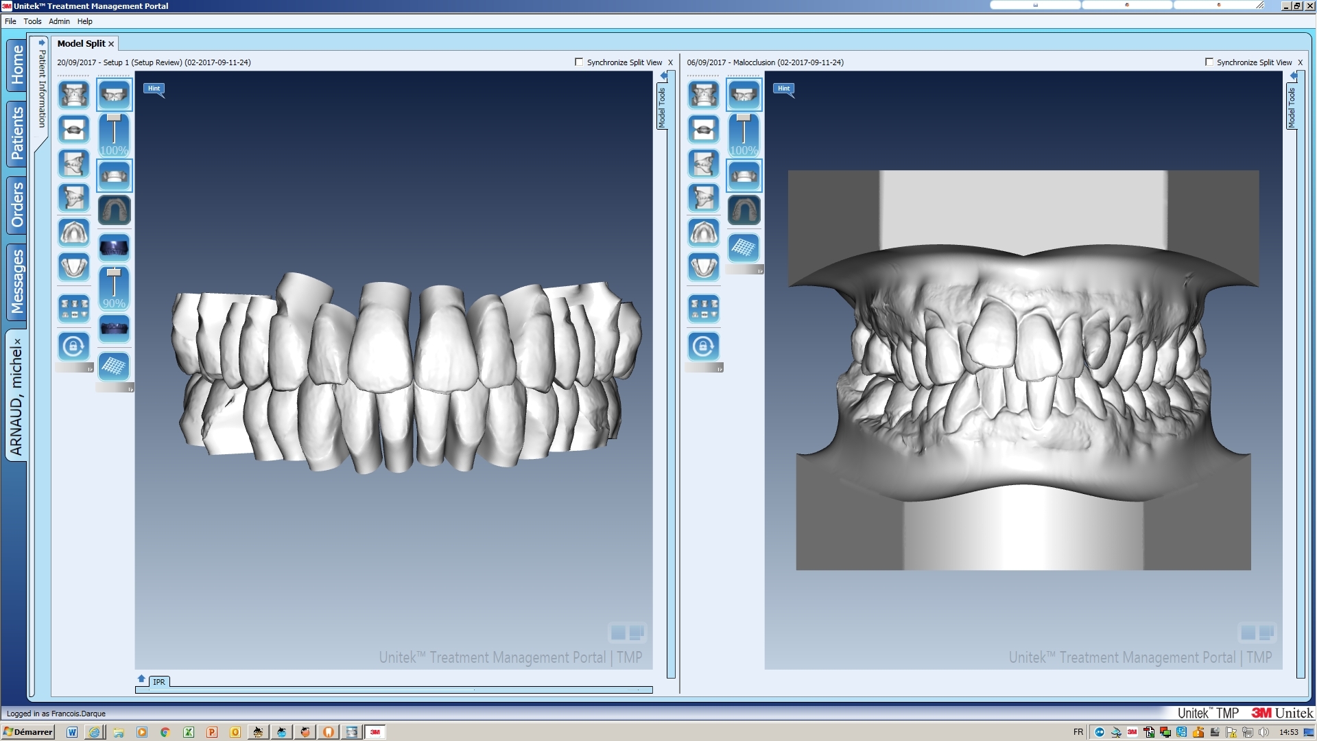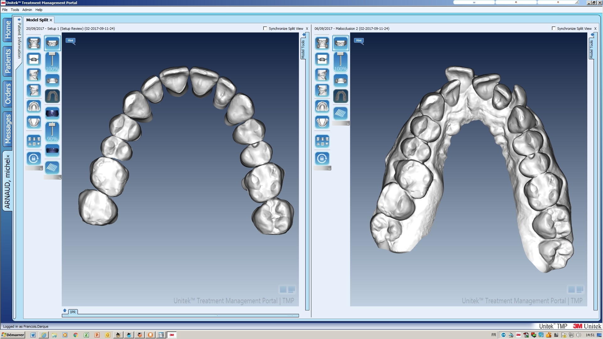 - Prise d’empreinte OPTIQUE pour la commande de la fabrication des bagues linguales individualisées adaptées à la morphologie de vos dents.